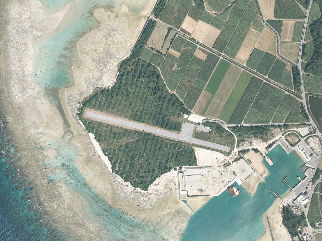 伊是名島上空の魅力は、何といっても 透明度の高いエメラルドブルーの海。